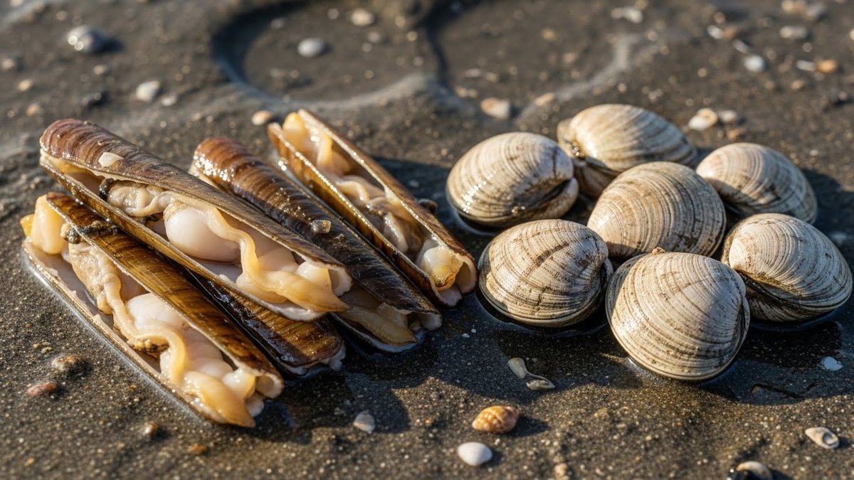 ハマグリは潮の満ち引きが比較的安定する干潟や砂地を好み、潮間帯の中短い深さに多く見られます。馬鹿貝はやや浅めの砂場や波が弱い場所に多く、生息密度は場所によってばらつきが大きいです。そのため、潮干狩りスポットでも場所によって採れる種類が偏ります。