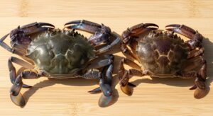 手に取るときは甲羅の硬さも確かめてみてください。ガザミは硬めでしっかりしており、ワタリガニは比較的薄めで割れやすいことがあります。市場での見分けに役立ちます。