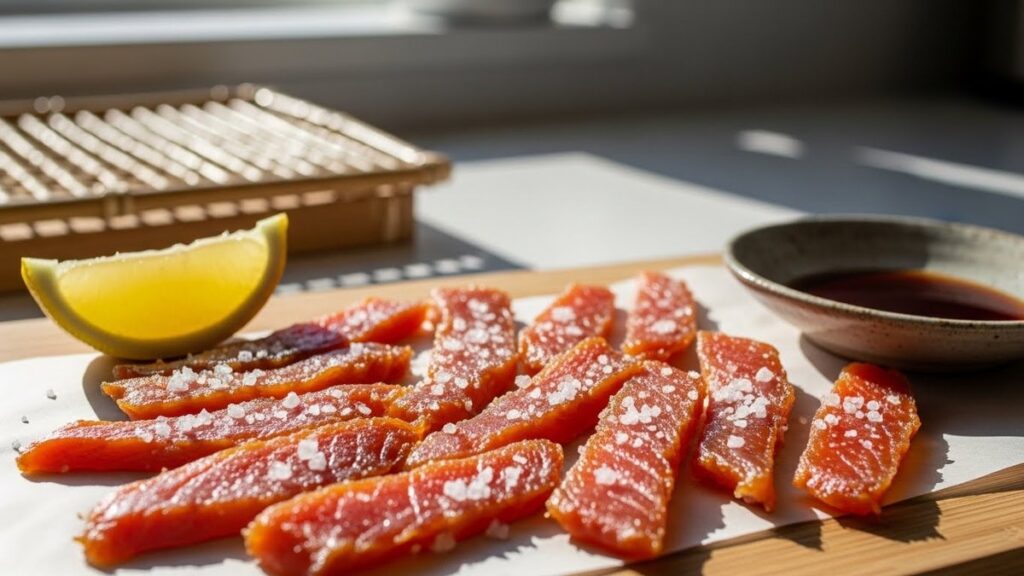 塩加減と乾燥時間で食感と味が決まる鮭とばの作り方を分かりやすく解説します。準備する材料や切り方、塩漬けと乾燥のポイントを具体的に紹介。保存や失敗対策、アレンジレシピまで日常で役立つ情報をまとめました。 -